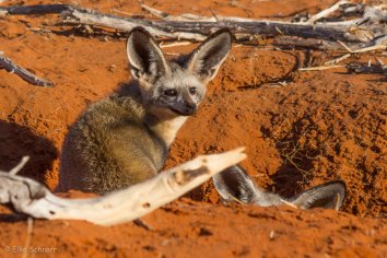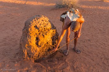 Hier erklärt er uns sehr anschaulich, wie sich die San früher die Gewohnheiten von Ameisenbären zunutze gemacht haben, um diese zu jagen: