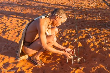 Hier demonstriert uns der Bushman sehr anschaulich eine Straußenfalle.