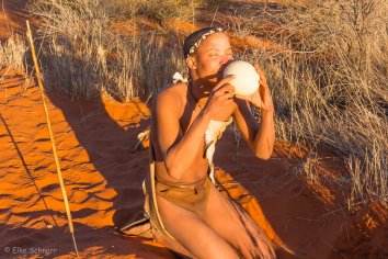 Er zeigt und erklärt uns unterwegs vieles über die Traditionen und Jagdmethoden der San. Von seiner faszinierenden Sprache, die mit Knack- und Zisch-Lauten versehen ist, verstehen wir natürlich kein Wort.