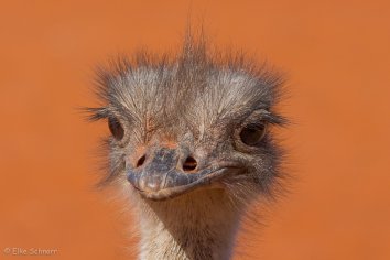 Gegen 9:00 Uhr sind wir wieder in der Lodge zurück und genehmigen uns einen zweiten Kaffee. Wir plaudern noch eine Weile mit Ute, die mit uns auf dem Bushman Walk war und beobachten fasziniert einen posierenden Strauß, der sich für uns in Szene setzt und von allen Seiten ablichten lässt.