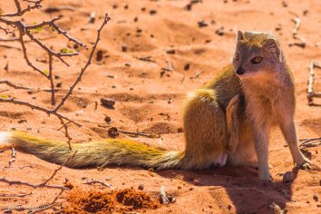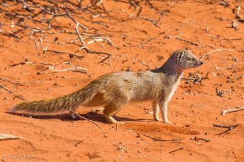 Dabei entdecken wir neben den allgegenwärtigen Springböcken diesmal auch noch eine Fuchsmanguste: