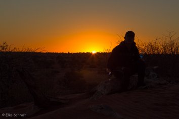 Den Abschluss des Game Drives bildet wieder der Sundowner am Sunset Point, wo wir erneut mit einem Gintonic anstoßen und ein letztes Mal — ein bisschen wehmütig diesmal — den wunderbaren Sonnenuntergang beobachten.