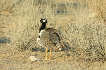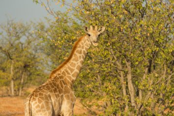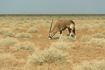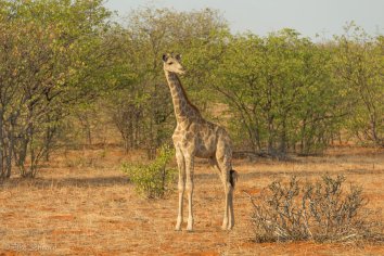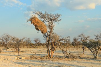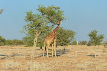 In der ersten Stunde gibt es eher weniger zu sehen — weite Steppenlandschaft, schöne Webervogelnester, hier und da mal ein einzelner Springbock, ein kleiner Scharbrackenschakal, ein paar Gackeltrappen, Oryxe und eine einsame Giraffe.