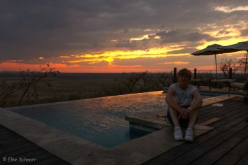 Zurück im Camp gibt es vor dem Abendessen noch einen schönen Sonnenuntergang:
