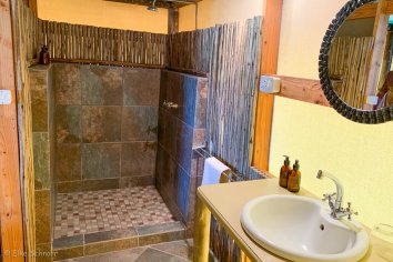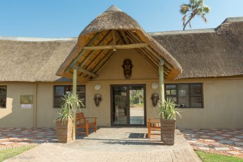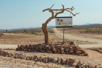 Gegen 14:00 Uhr checken wir für die nächsten zwei Tage in der Palmwag Lodge ein, wo wir wieder sehr nett und zuvorkommend empfangen werden. Bevor wir jedoch den Schlüssel zu unserem Häuschen bekommen, müssen wir hier erst noch eine Erklärung unterschreiben, die im Wesentlichen besagt, dass die Lodge für nichts haftbar gemacht werden kann, was uns hier passieren könnte. Und da es sich um ein nicht umzäuntes Gelände handelt, in dessen Umgebung sich gefährliche Tiere aufhalten, ist die Lodge insbesondere nicht haftbar, wenn wir vom Löwe gefressen werden