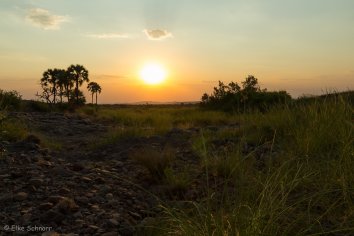 Auf dem Rückweg entdecken wir Dumbo noch einmal — diesmal allerdings weit genug entfernt vom Wanderweg, so dass wir keinen größeren Umweg laufen müssen — und kommen gerade rechtzeitig zum Sonnenuntergang wieder an der Lodge an.