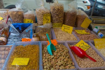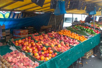 Dazu schreien die Markthändler, was die Stimmbänder hergeben und das in einem beachtlichen Kauderwelsch an Sprachen und Dialekten. Jeder versucht uns davon zu überzeugen, dass seine Feigen, seine Pfirsische oder seine Ananas die leckersten seien und wir kosten uns von einer Probe zur nächsten durch.