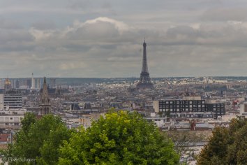 Hier liegt uns nach einem kurzen Anstieg ganz Paris zu Füßen und das auch noch ohne die üblichen Touristenansammlungen. Wir genießen das Panorama in aller Ruhe und essen das Obst, was uns die Marktschreier verkauft haben, bevor wir schließlich wieder in die Metro steigen und uns auf zu den typischen Touristen-Highlights machen.