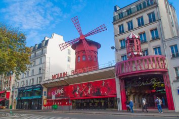 Direkt vor uns steht die lasterhafte Windmühle Moulin Rouge, die allerdings — eingepfercht zwischen Sexshops, Videotheken und anderen Erotikschuppen — im nüchternen Sonntag-Morgen-Licht keinen wirklichen Eindruck auf uns macht.