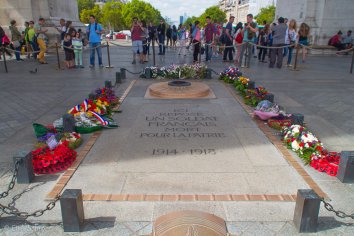 Wieder unten angelangt, schauen wir uns noch das Grabmal des unbekannten Soldaten an, der 1921 unter dem Bogen beigesetzt wurde.
