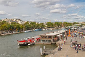 Eine weitere Fußgängerbrücke, die uns den Fotoapparat zücken lässt, ist die Pont des Arts. Hier trifft man sich wohl gern am Abend auf ein Glas Champagner, Wein oder Bier.