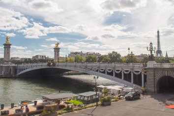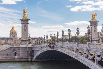 Eine der schönsten Brücken der Stadt ist dabei für uns die Pont Alexandre III. Die äußerst prunkvolle Bogenbrücke wurde im Jahre 1900 zur Weltausstellung als Zeichen der französisch-russischen Freundschaft im Neobarock errichtet und nach Zar Alexander III. benannt.