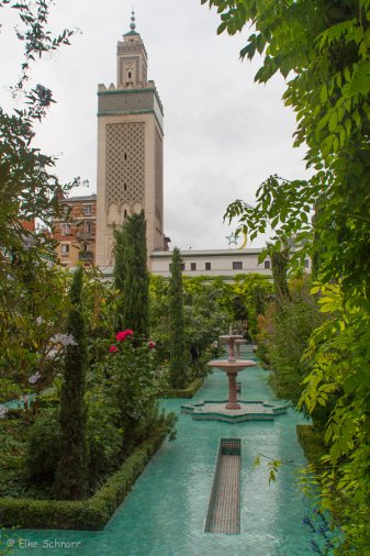 Direkt hinter dem Park stoßen wir auf Frankreichs Hauptmoschee — die Grande Mosquée de Paris. Errichtet im spanisch-maurischen Stil ist sie eines der bedeutenden Bauwerke von Paris.