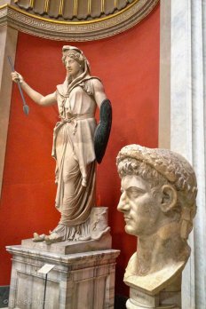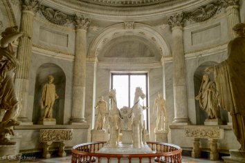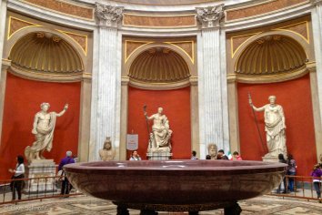 Auf unserem Weg durch die Vatikanischen Museen bestaunen wir die unzähligen Skulpturen, Reliefs und Fresken, laufen mit dem Kopf im Nacken durch die Hallen und bewundern die reich verzierten Decken und detailreichen Szenen der Wandgemälde.