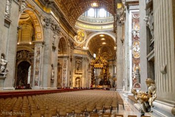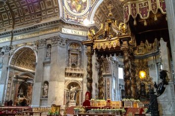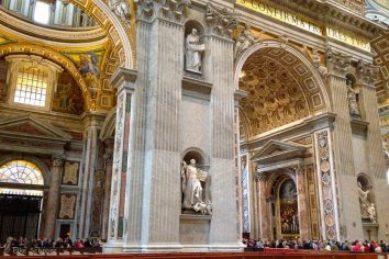So kommen wir recht schnell in die größte Kirche der Welt hinein und sind von der Pracht im Inneren überwältigt: Das Wahrzeichen des Vatikans ist mit seinen riesigen Eingangstoren, glänzenden Marmorböden, reich geschmückten Wänden und Säulen und der gewaltigen Kuppel einfach einzigartig. Egal ob katholisch oder nicht: Man muss einfach beeindruckt sein von dieser Pracht.