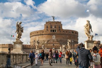 Wir laufen am Tiber wieder zurück in Richtung Hotel und schauen noch bei der Engelsburg vorbei. Ursprünglich ein Grabbau für Kaiser Hadrian wurde sie später zur stärksten Festung der Stadt ausgebaut und erhielt ihren Namen, als Papst Gregor in einer Vision von einem Engel das Ende der Pest angekündigt wurde.