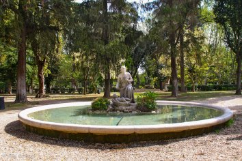 Wir machen einen ausgedehnten Spaziergang durch den Park der Villa Borghese — die grüne Oase der Stadt. Wir kommen vorbei an der Trabrennbahn und am Largo Marcello Mastroiani und beobachten joggende Römer, die ihre Körper stählen, Familien beim Picknick und Väter, die mit ihren Söhnen Fußball spielen.