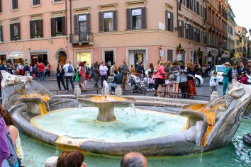 Noch einmal ein kurzer Blick auf die Spanische Treppe, die leider nicht wie erhofft, mit Blumen geschmückt ist, dann zieht es uns weiter zu Rom’s berühmtesten Brunnen: dem Fontana di Trevi.