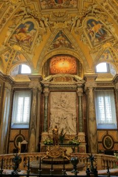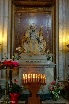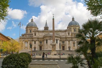 Als wir uns satt gesehen haben, schlendern wir über die Piazza Barberini weiter bis zur Kirche Santa Maria Maggiore: Der Legende nach verdankt diese Basilika ihre Existenz einem ungewöhnlichen Schneefall im August: Maria soll Papst Liberius im Traum erschienen sein und ihn angewiesen haben, an der Stelle, an der am nächsten Morgen Schnee liege, eine Kirche zu bauen. Ob das wahr ist oder nicht