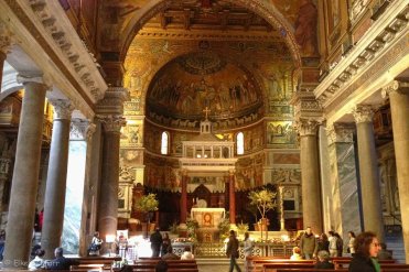 Die Kirche ist mit wunderschönen Mosaiken ausgestattet und natürlich gibt es auch hier wieder eine Geschichte dazu: Der Legende nach soll an der Stelle, wo heute die Kirche steht, am Tag von Christi Geburt eine Ölquelle aus der Erde gesprudelt sein. Kirchenhistoriker vermuten sogar, dass hier der erste offizielle Kultort der Christen in Rom war.