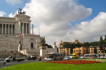 … und kommen zur Piazza Venezia und dem Monumento Vittorio Emanuele — ein nationales Denkmal, welches dem ersten König des neu gegründeten Italiens gewidmet ist und was von den Römern meist nur „Schreibmaschine“ oder „Gebiss“ genannt wird.