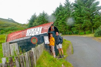 Nach einer kleinen Wanderung mit vielen schönen Aussichtspunkten unterwegs kommen wir dort an — können aber nicht sehr lange verweilen, denn der schottische Regen setzt wieder ein.