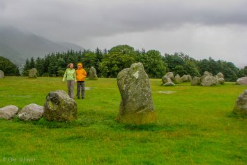 An unserem letzten Tag schauen wir uns u.a. den Castlerigg Stone Circle an — ein Steinkreis, in dem 38 Findlinge in den verschiedensten Formen und Ausmaßen einen faszinierenden Kreis bilden, als sei er mit einem Zirkel gezogen worden.