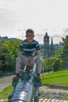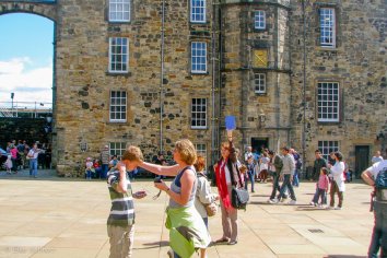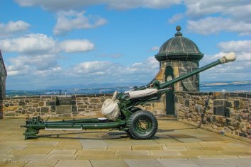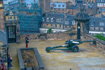 Pünktlich um 13:00 Uhr wird auf dem Schlosshof die Ein-Uhr-Kanone abgefeuert. Wir schauen uns die Zeremonie an, die täglich so akkurat erfolgt, dass die Edinburgher ihre Uhren danach stellen.