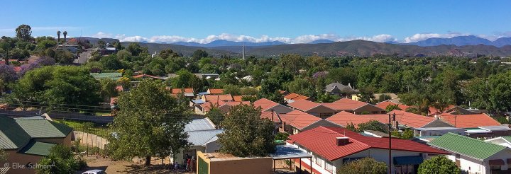 Entlang der Hauptstraße finden sich viele kleine Geschäfte, einige Restaurants und viele hübsche Häuser mit saftig grünen Gärten — eine richtige kleine Oase inmitten der öden Steppe rings umher — und der holländische Einschlag ist deutlich erkennbar.