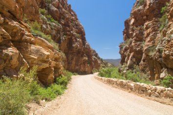 Die Strecke über die Swartberge ist recht spektakulär: eine Gravel Road von 25 Kilometern Länge windet sich bis auf 1.583 Meter Höhe hinauf und bietet bei strahlend blauem Himmel tolle Aussichten.