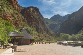 Bis zu den Cango Caves ist es gar nicht weit — wir müssen nur etwa 30 Minuten fahren, dann sind wir schon da.