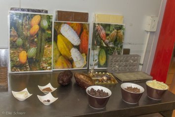 Ein Angestellter erklärt uns hier bei einer Privatführung viel Interessantes rund um die Schokoladen- und Pralinenherstellung und wir dürfen natürlich alles probieren