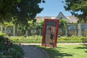 So machen wir unseren ersten Stopp schließlich in Kanonkop, was uns von Annette empfohlen wurde. Wir schauen uns die sehr schöne Anlage und den Weinkeller an, verzichten aber auf ein Tasting, da der Pinotage, wofür Kanonkop bekannt ist, eher nicht unser Lieblingswein ist.