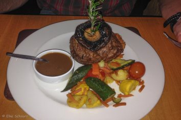 Zurück im B&B entspannen wir bei einem Glas Amarula noch eine Runde, bevor wir uns auf zum Abendessen machen. Christine hat uns im nahegelegenen De Kelder einen Tisch reserviert, wo wir einen sehr gemütlichen Abend haben.
