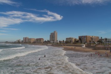 In Port Elizabeth machen wir dann zunächst einen kleinen Stadtrundgang und kommen am Donkin Memorial vorbei. Die Pyramide lies Gouverneur Sir Rufane Donkin Anfang des 19. Jahrhunderts in Erinnerung an seine verstorbene Frau Elizabeth errichten, nach der übrigens auch die Stadt ihren Namen hat. Der Leuchtturm daneben beherbergt die Touristeninformation.