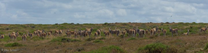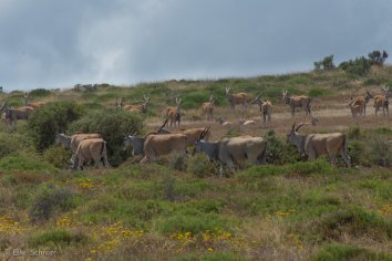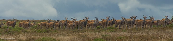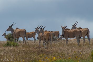 Da die Elands hier offenbar einen guten Frühstücksplatz haben, ziehen sie sich immer nur soweit zurück wie unbedingt nötig und so wiederholt sich das „Spiel“ mehrere Male, denn der Wanderweg führt geradewegs über ihren „gedeckten Tisch“.