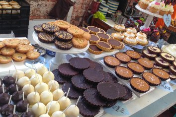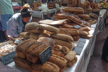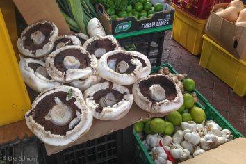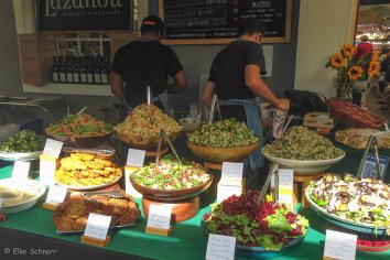 Leckere Düfte aus aller Herren Länder vermischen sich — nur sind wir leider unmittelbar nach dem Frühstück gekommen und deshalb (eigentlich) pappsatt. Trotzdem bekommen wir natürlich Appetit und probieren das ein oder andere Häppchen, während wir uns in einer Menschenmasse einmal quer hindurch schlängeln. Es gibt hier einfach alles, was das Herz begehrt: frisches Gemüse, Käse, Brot, Kaffeespezialitäten, Fisch und viele asiatische und internationale Gerichte.