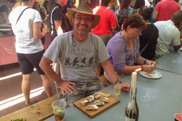 Da Andreas ja schon immer mal Austern probieren wollte, aber bisher nicht so recht wusste, wie man diese richtig isst, ist hier für ihn DIE Gelegenheit, das mal auszuprobieren, wo er in der Menschenmenge von niemandem groß beachtet wird.