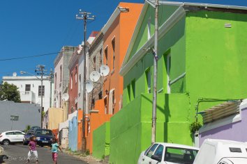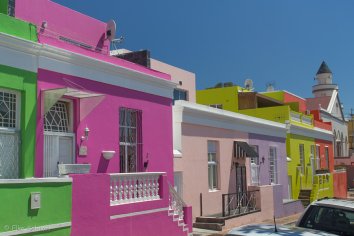 Unser Rundweg führt uns weiter nach Bo-Kaap, den Stadtteil von Kapstadt’s Moslem-Gemeinde — auch Kap-Malaien genannt. Das Bild dieses 1780 entstandenen, ältesten Stadtviertels ist geprägt von kleinen farbenfrohen Häusern, Frauen mit Kopftüchern und Männern mit langen weißen Gewändern. Gerüche nach exotischen Gewürzen ziehen durch die Straßen und fünfmal am Tag ruft hier der Muezzin zum Gebet.