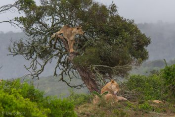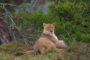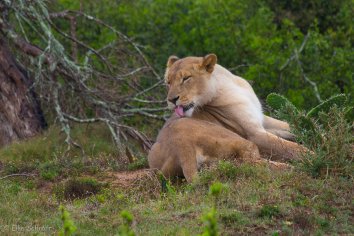 Wir freuen uns alle total und bleiben eine ganze Weile hier. Immer wenn sich die Löwen soweit verkrümelt haben, dass sie hinter den Büschen und Bäumen nicht mehr zu sehen sind, sucht Dane eine neue Position mit dem Jeep, so dass wir sie wieder gut beobachten können.