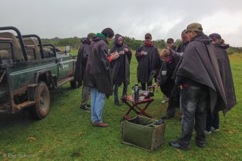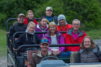Um 16:00 Uhr starten wir zur heutigen Nachmittags-Tour. Wir hoffen alle auf Elefanten, Hippos und trockenes Wetter.