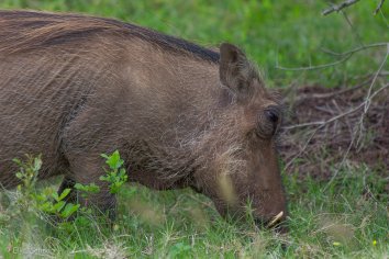 Dafür steht auf einmal ein Warzenschwein vor uns, zu dem sich auch gleich noch ein zweites gesellt.