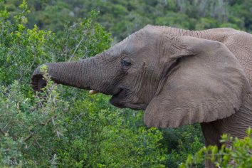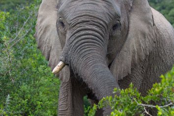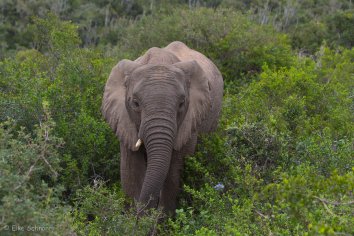 Und dann finden wir auch die Elefanten. Erst nur aus einiger Entfernung, aber dann kommen zwei von ihnen in unsere Richtung und sind uns schließlich so nah, dass ich mit meinem Objektiv nur noch den Kopf draufbekomme.