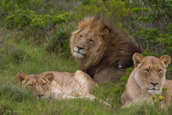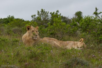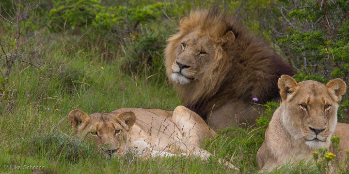 Nach einer kurzen Kaffeepause zum Aufwärmen fahren wir dann nochmal in die Richtung, wo wir gestern die Löwen entdeckt haben und tatsächlich: sie halten sich immer noch in der selben Gegend auf und wir kommen zu einem krönenden Abschluss mit der ganzen Löwenfamilie.
