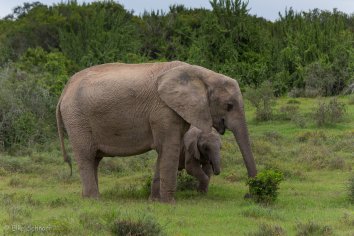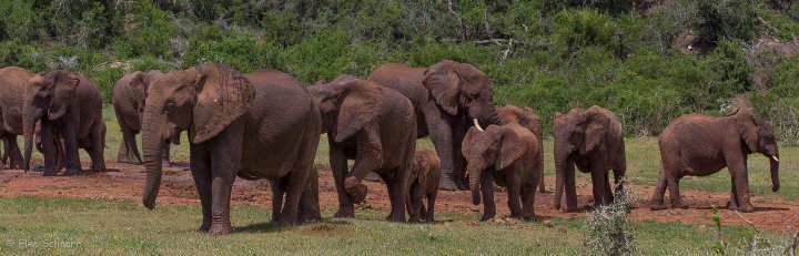 Zuerst sehen wir eine Elefantenkuh mit ihrem Nachwuchs….