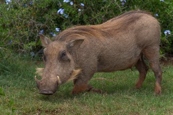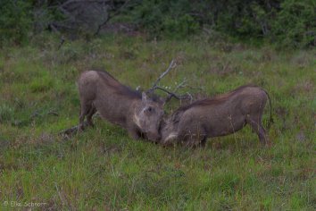 …und später immer mal wieder Gras schmatzende und herumtollende Warzenschweine. Beim Fressen knicken sie meistens ihre Vorderfüße ein, damit sie einfacher an das Gras heran kommen. Das sind echt lustige flinke Gesellen, die immer Spaß zu haben scheinen.