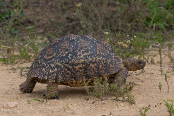 Auch Leoparden-Schildkröten entdecken wir unterwegs einige, die im Gegensatz dazu die Ruhe drauf haben und gemächlich ihre Kreise drehen.