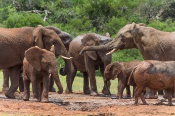 Das Highlight des Tages ist eine große Herde Elefanten, die sich genüsslich in einem Schlammloch suhlen und sich gegenseitig mit dem kühlen Nass bespritzen. Dabei befinden sie sich in friedlicher Eintracht mit Wasserbüffeln und Warzenschweinen, die respektvoll warten, bis die Elefanten Ihnen ein Plätzchen im Schlamm frei machen.