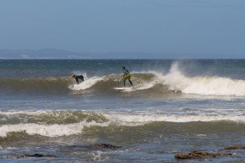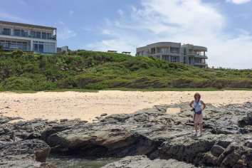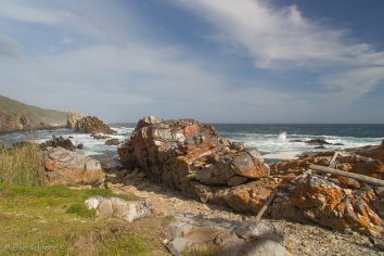 Gegen Mittag fahren wir dann weiter in Richtung Tsitsikamma. Am Beach von Jeffrey’s Bay legen wir eine kurze Picknickpause ein. Wir unterhalten uns ganz nett mit einem Einheimischen und beobachten die Surfer, die auf den Wellen entlang tanzen — die Bucht ist offenbar eine beliebte Spielwiese für diese Sportler.