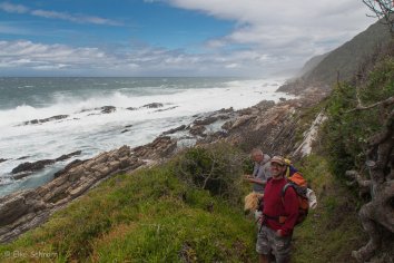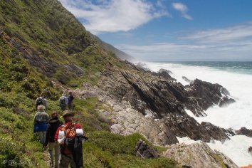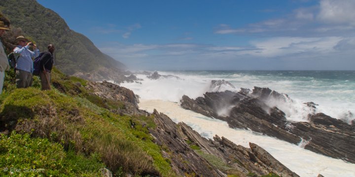 Die Wanderung beginnt direkt mit dem Abstieg zu den Rock Pools und wir sehen gleich am Anfang einen Knysna-Turako.